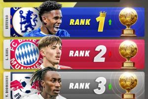 2026金童奖排名预测:埃斯特旺升榜首,卡尔、迪奥曼德分列二三