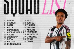 尤文客战罗马名单:伊尔迪兹领衔,洛卡特利、弗拉霍维奇缺阵