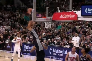 GIF-文班亚马大帽坎宁安反击空接暴扣