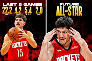 里德·谢泼德逐渐展现未来全明星潜质,火箭新星正在崛起。在最近几场比赛中,他表现火热,展现了得分能力、自信以及出色的进攻感觉,这些正是他被高度看好的原因。如果这种状态持续下去,火箭可能将见证一位真正新星的爆发。
